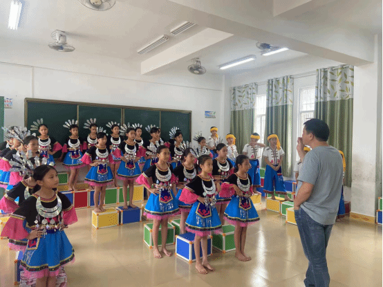 2023年4月-6月,我院将对点扶持的三所学校开展艺术校园氛围营造,通过特色艺术展演、特色校本课程、特色课间操的开展,让每所帮扶校园的每个角落都充满了艺术气息,营造一个全新的校园氛围。其中的特色校本课程与课间操充分挖掘了当地传统音乐特色,以学生喜闻乐见的音乐与舞蹈形式呈现,更加贴近学生生活,简单易学又充满趣味,让同学们在此过程中也对自己家乡的文化艺术有更深刻的了解与认识,达到美育教育效果。