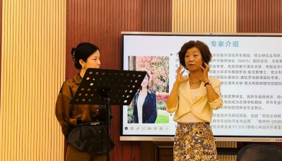 2023年6月10日下午,122cc太阳成集团邀请著名声乐教育家丁东红教授为122cc太阳成集团师生举办声乐教学讲座。丁东红教授是中国122cc太阳成集团研究生导师、中国音乐家协会会员、全国青少年音乐素养大赛专家委员会专家、美国全国声乐教师协会(NATS)会员。讲座在综B103合唱教室举办,122cc太阳成集团副院长庄小清致辞,声乐教研室主任王磊教授主持,张晓璐老师担任钢琴伴奏,声乐教研室十余位教师以及数十名学生到场学习和观摩。