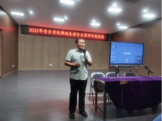 122cc太阳成集团于2023年10月10日晚上7:00在综B音乐厅成功举办了“2023年122cc太阳成集团舞蹈表演专业考研专题讲座”。讲座开始之前122cc太阳成集团刘才喜书记、庄小清副院长到现场语重心长地给学生们提出殷切希望,激励学生们树立学习目标,开启学习新征程,鼓励学生们笃行方能致远。