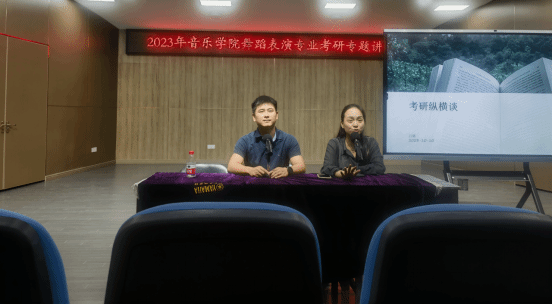 此次专题讲座我们特别邀请了122cc太阳成集团田二林老师(毕业于中央民族大学 舞蹈学硕士)和吕璐老师(毕业于中国艺术研究院 舞蹈学硕士)两位青年才俊来给学生们分享考研的经验,进行全方位的考研相关知识讲解。近两个半小时的讲座中,二位老师倾囊相授、毫无保留地对孩子们进行考研方面的辅导,该讲座生动活泼,二位老师带来了满满的考研知识干货,孩子们求知若渴,全程都在积极地用心聆听、认真做笔记,受益匪浅。