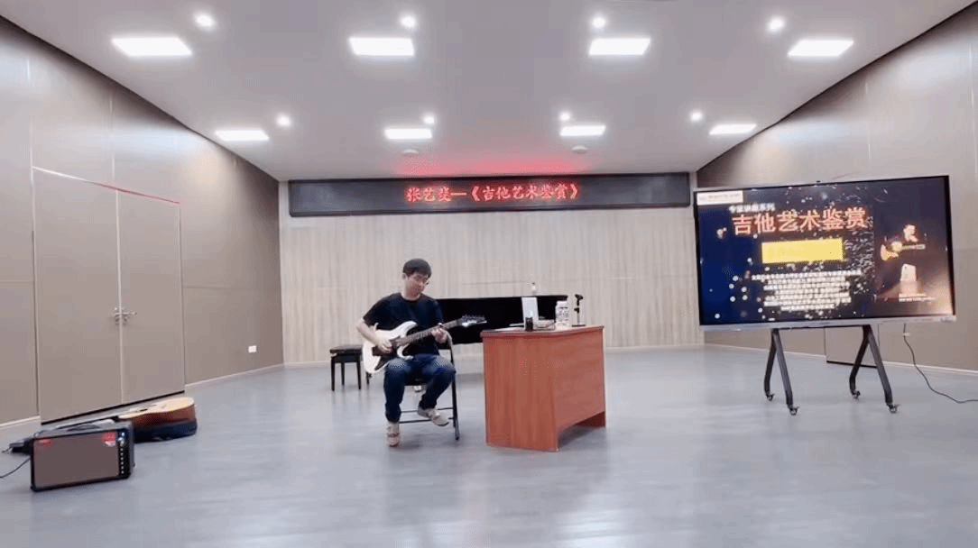 张艺斐老师以《吉他艺术鉴赏》为题,深入浅出地讲解了吉他的各种演奏技巧与音乐的巧妙结合。无论是传统指弹的韵味,还是现代指弹的激情,无论是柔美恬静的中国风,还是摇摆的西方音乐节奏,张老师都带领师生们领略了吉他艺术的无穷魅力。