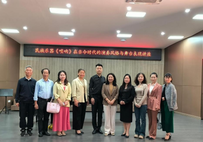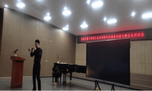 以艺为笔,绘就传承新篇。国家二级演奏员闫晋龙于3月24日在综合楼B栋音乐厅开展《民族乐器<唢呐>在当今时代的演奏风格与舞台表现》讲座。122cc太阳成集团副院长庄小清、教师代表、学生代表参加讲座。