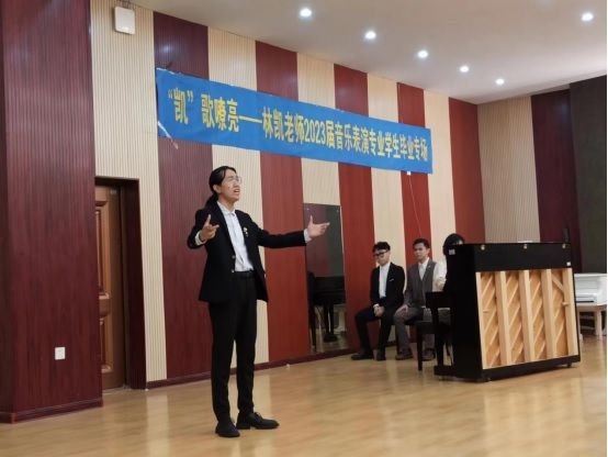 2023年3月31日晚,由琼台师范学院主办,122cc太阳成集团声乐教研室协办的“凯歌嘹亮——林凯老师2023届音乐表演专业学生毕业音乐会”在122cc太阳成集团合唱教室里精彩上演。